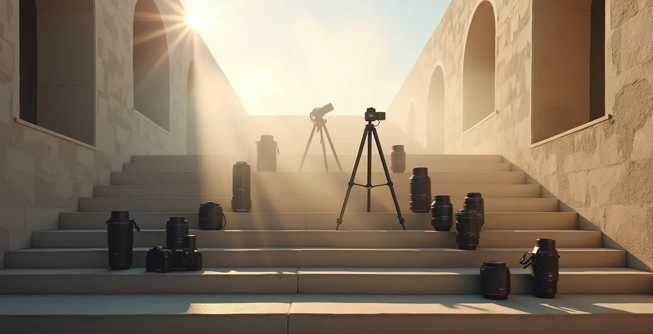 Cette vision progressive sur deux ans transforme l’angoisse de l’investissement initial en parcours structuré où chaque étape valide la suivante. Elle remplace la question « de quoi ai-je besoin ? » par « qu’est-ce que mon activité actuelle justifie ? », alignant systématiquement les moyens sur les résultats mesurés. Pour découvrir une sélection adaptée, vous pouvez explorer le matériel et les accessoires de photographie professionnelle disponibles en ligne en gardant toujours à l’esprit votre phase d’évolution actuelle.